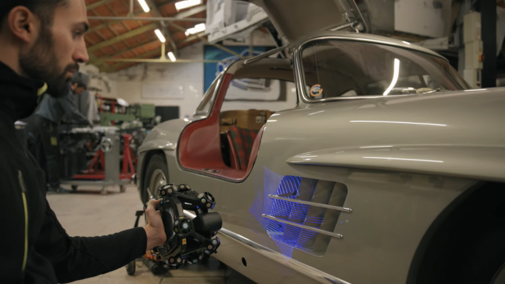 然而,这台半个世纪前制造出的梅赛德斯-奔驰经典车型修复面临巨大挑战:原厂零件大多早已停产,需1:1重新设计和再制造,弯曲车身面板等复杂形状需要手工在木制模板上塑造,而传统的木制模具制作耗时耗力,精度也难以把控。现代生产中多用到CNC数控加工工艺,需要精确的3D数模,因此,获取老爷车的三维数据则成为了汽车修复的重要一环。