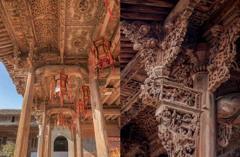 精湛的雕刻艺术:花厅正厅装饰尤为考究,梁、檩、牛腿、雀替、檐枋、船篷轩、花篮拱及轩顶等处均雕饰精美。这些精美构件形态复杂、纹饰细腻,对三维采集设备的细节还原能力提出了极高要求。