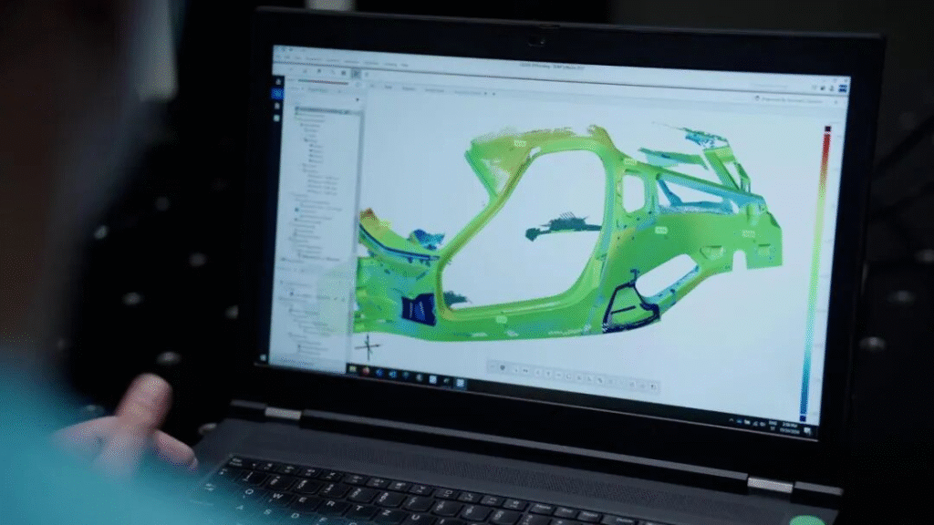 其次,除了可对车架表面及结构缺陷进行检测外,采集到的高精度三维数据亦可导入虚拟仿真软件,用于模拟车架在不同工况下的受力情况。通过对车架进行力学分析,工程师们可以评估车架的强度和耐久性,从而进一步优化车架的设计和生产工艺。
