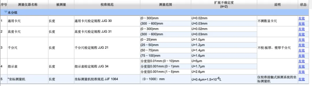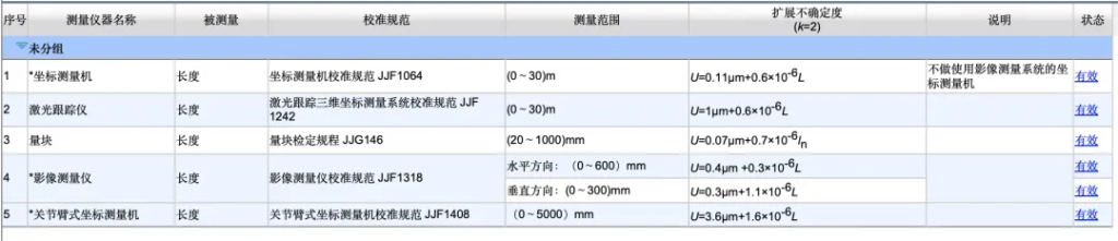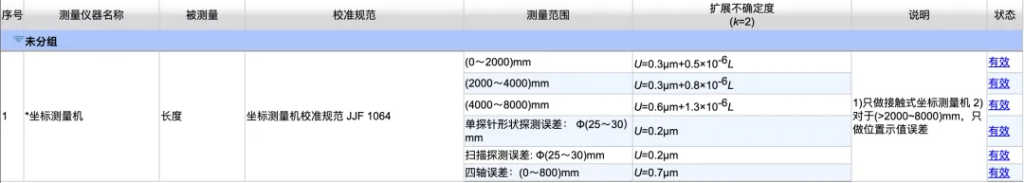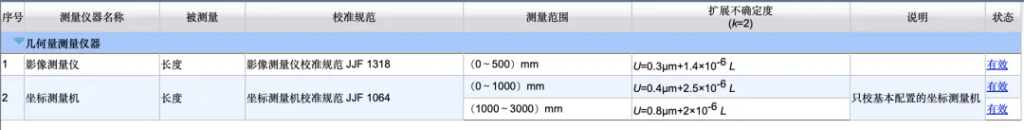 CNAS认可能力范围,是经过技术评审、现场考核和不确定度验证之后的能力声明,每一行每一列都有实际的测量数据和程序支撑。