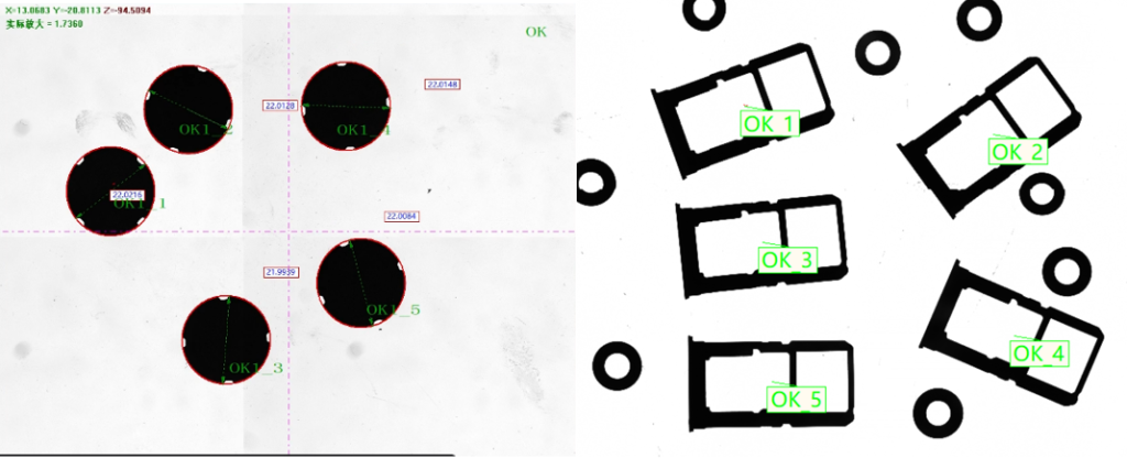 对于小件产品的大批量检测需求,如密封圈、模切件、金属卡槽等小件产品,广视野测量模式能提供更大测量视野,支持随意摆放产品、一键闪测、跨视野拼接扫描检测,软件自动识别判断OK/NG,保证对产品的质量控制和工艺优化,提高企业的成本控制及经济效益。