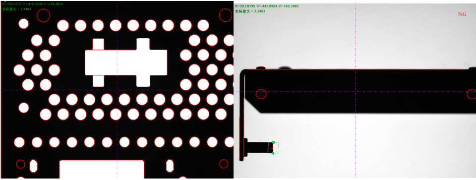 针对PCB板产品需要同时快速检测外形轮廓尺寸及金手指等细微处,双镜头可同时兼容使用,外形长宽距离、孔径使用大视野镜头快速抓取;金手指、mark点等产品微小处使用双镜头快速测量仪所搭载的高精度视野模式,该模式搭载高精度变倍头,可精准识别产品微米级细节,从源头保障测量结果的准确性与可靠性;产品的尺寸参数、形状轮廓及部件间位置关联,均可在高精度视野下完成精准测量。