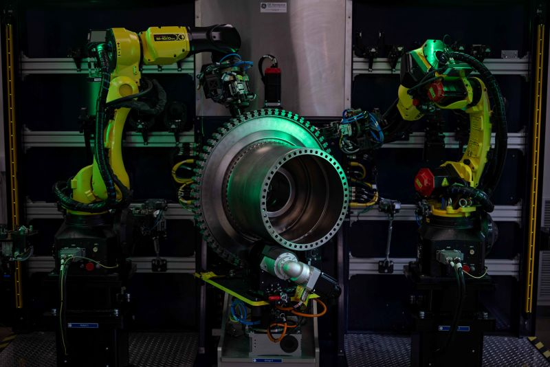 这种细致的检查非常耗时,因此 GE Aerospace 位于纽约尼斯卡尤纳的研究中心以及位于魁北克布罗蒙的全球自动化与机器人中心的工程师们花费五年时间开发机器人检测系统,以辅助这项艰巨工作,这是 GE Aerospace 长达十余年的人工智能研发工作的一个组成部分。首批 AI 指导的“白光机器人”检测系统于 2024 年秋季,在服务技术加速中心(STAC)的维护、修理与大修(MRO)车间投入使用。