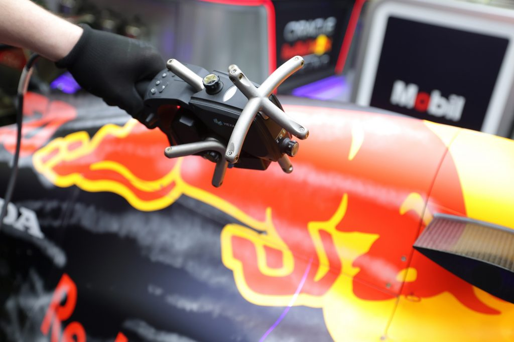Leitz PMM-C 三坐标测量机广泛应用于制造与装配区域,是唯一能够满足红牛福特动力系统在动力单元制造中对精度、重复性和灵活性要求的设备。便携式 AS1 3D 扫描仪则与 Absolute Arm 测量臂配合使用,对动力单元曲轴箱外表面及能量回收系统(ERS)安装结构进行扫描检测,用于质量控制。