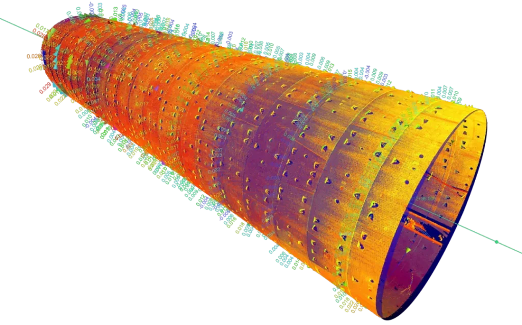 凭借徕卡测量系统的精密制造工艺,徕卡RTC360拥有业界领先的精度表现,可将范围噪声控制在0.5mm@20m,并且提供2.9mm@20m的3D点位精度,所获得更高质量的隧道点云能够实现更准确的点云配准,进而可交付优于5mm绝对精度的隧道点云成果。
