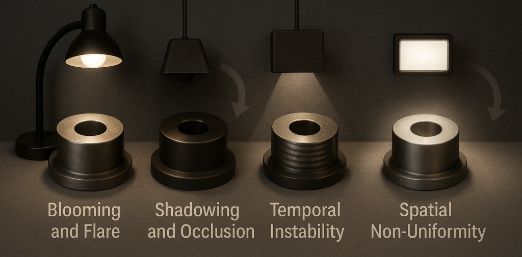 照明决定对比度;对比度决定“看到”的边缘;边缘决定测量结果。微小的照明缺陷,就会变成尺寸偏差: