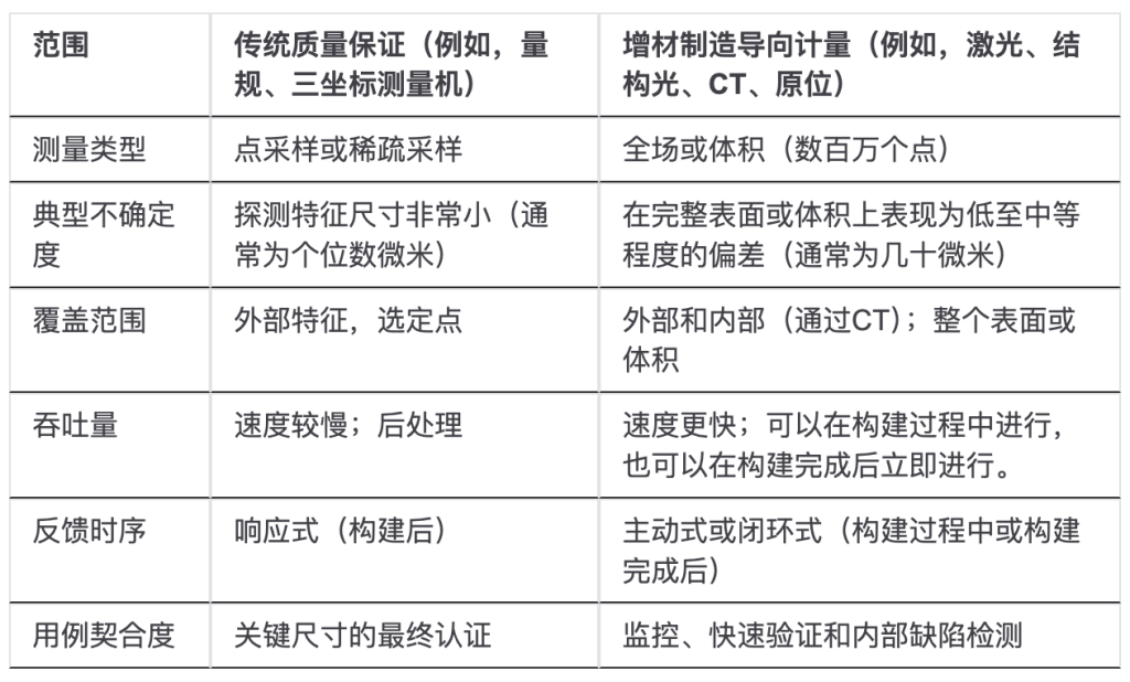 重要性:在增材制造中,计量学的角色从“最后检验”转变为“边做边控”。即使三坐标测量机(CMM)能够实现更低的测量点不确定度,增材制造专用扫描、CT扫描和原位监测也能更早地提供更丰富的数据,并支持在制造过程中进行修正。这正是质量保证从被动检测转向主动控制的关键所在。
