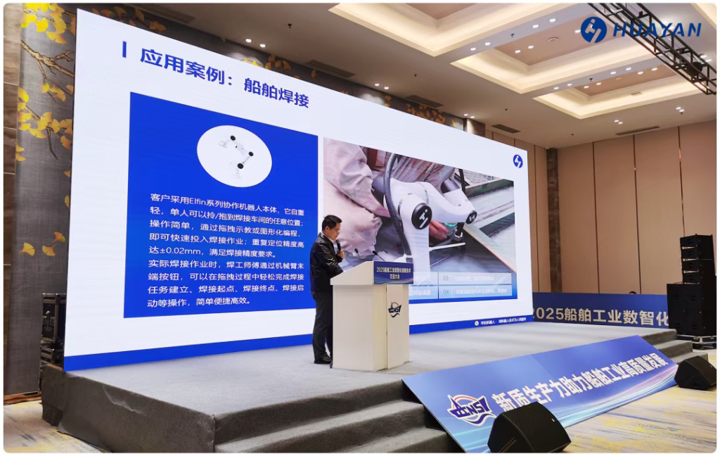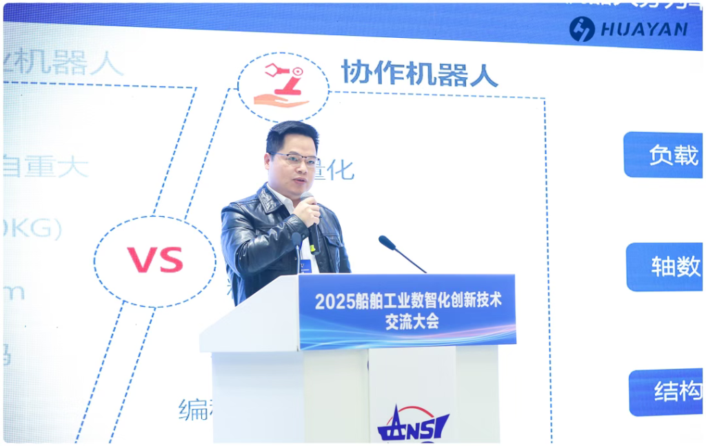 在大会技术交流环节,华沿机器人汽车BU总经理戴劲围绕“华沿协作机器人助力船舶智能制造升级变革”发表主题演讲。他指出,船舶焊接作业环境艰苦、复杂,正面临“优秀焊工青黄不接”、焊接工艺一致性难保证等多重挑战,而协作机器人以其柔性化、易部署、高精度的特点,正成为破解这些难题的关键技术路径。