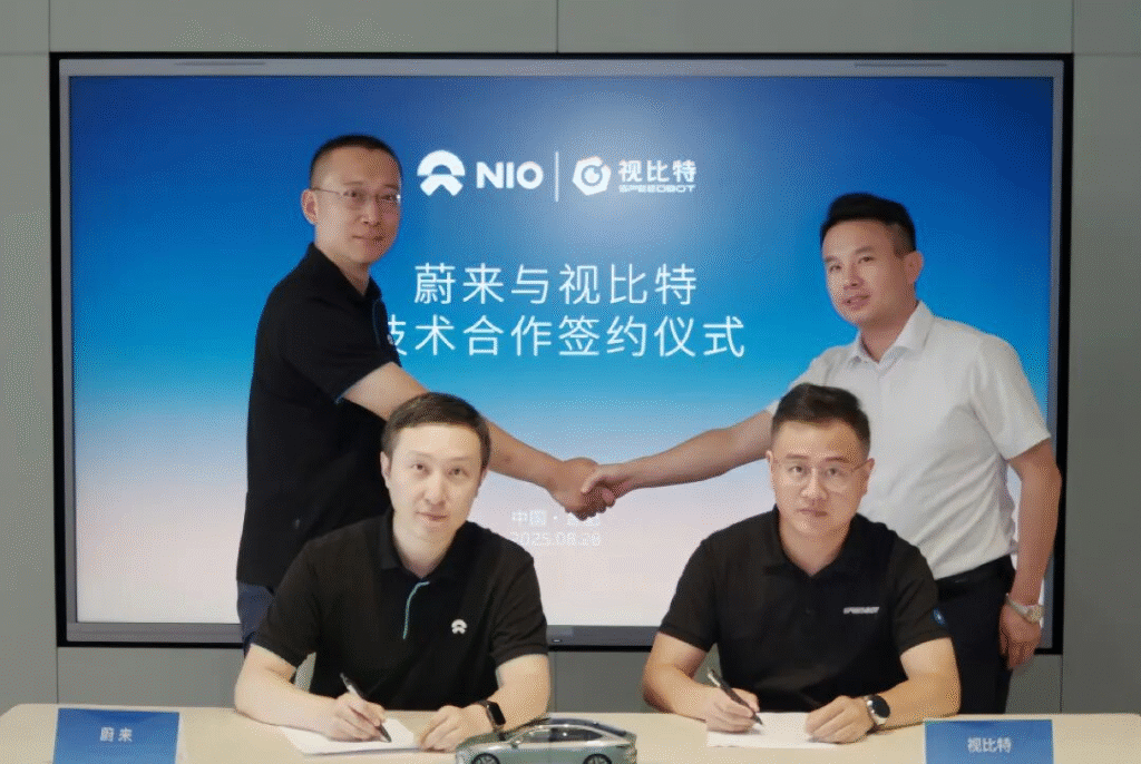 2025年8月28日,视比特机器人与蔚来汽车技术合作签约仪式在蔚来合肥基地成功举行。蔚来汽车制造工程集成部总监贾永泉、总装制造工程负责人邢龙斌,与视比特机器人CEO邓文平、销售总监赵荣兴等双方代表共同出席,携手见证双方在智能制造领域迈向更深层次、系统性合作的重要时刻。