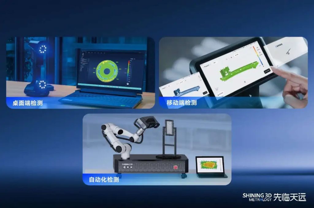 SHINING3D Inspect在设计之初就考虑到了复杂多样的工业检测需求,提供多种一站式扫描检测工作流,灵活应对桌面端/移动端/自动化检测等不同应用场景。