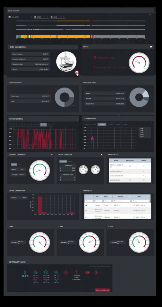 Metrology Gate 可实时监控所有已连接的CMM状态。无论在车间现场还是计量室内,质量人员都能通过可视化仪表板查看设备运行情况、程序执行状态以及停机统计数据。 - 集中式数据采集