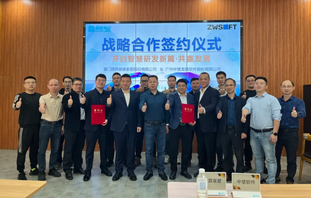 12 月 24 日,中望软件与建霖集团正式签署战略合作协议。中望软件中国事业部总经理韩从军、福建大区总监吴红锋,建霖集团副总裁徐俊斌、技术研究院院长王应泉出席仪式,共同见证卫厨行业与国产工业软件领域协同创新的重要时刻。